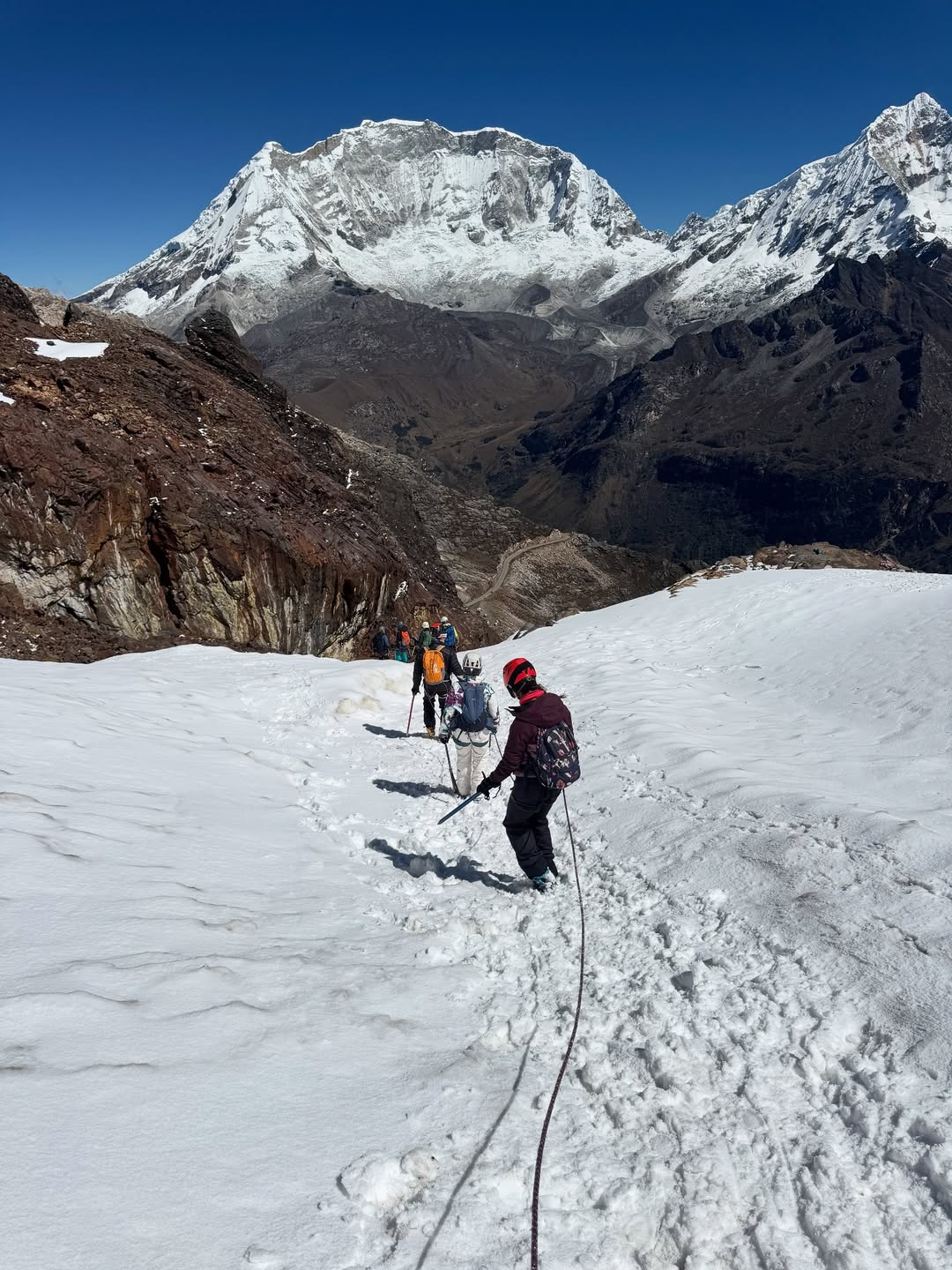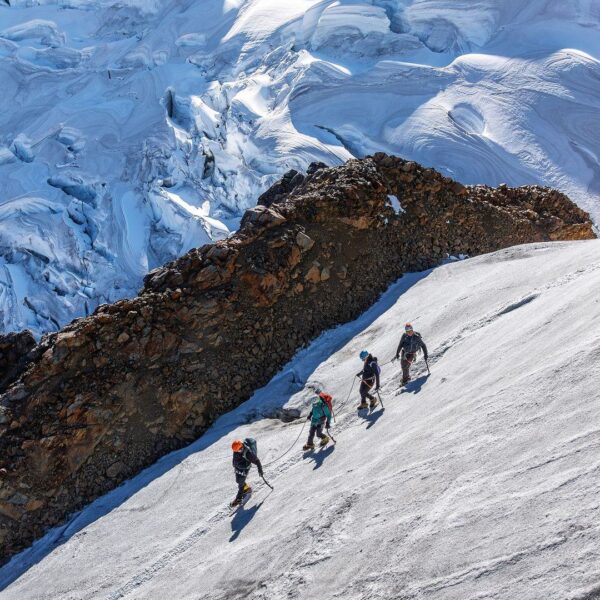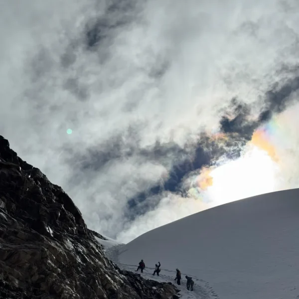 La mejor opción para principiantes, combina trekking con caminata en hielo, alcanzando la cima a 5150 m de altitud.