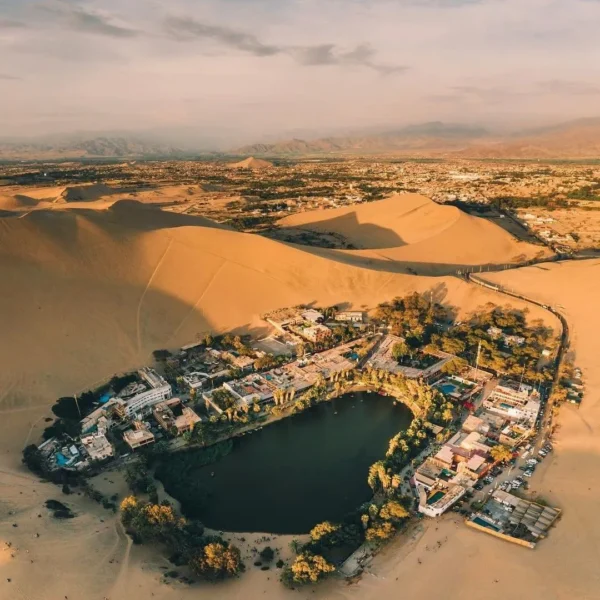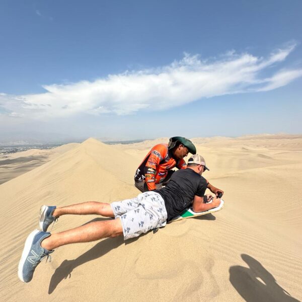 Luego continuamos hacia el Oasis de la Huacachina, allí bajaremos de la movilidad para subir a los tubulares que nos harán recorrer de arriba abajo las interminables dunas de Ica.