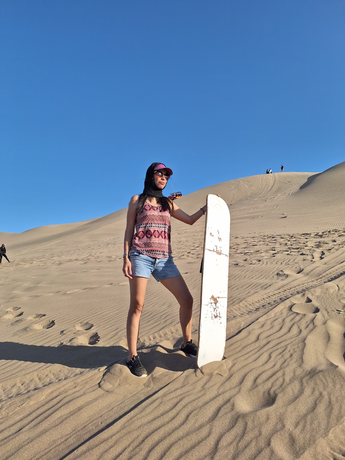 También nos deslizaremos con las tablas de sandboard desde lo más alto. Después de esta adrenalínica experiencia tendrás el tiempo suficiente para pasear por el oasis, fotografiarte y hacer las últimas compras.