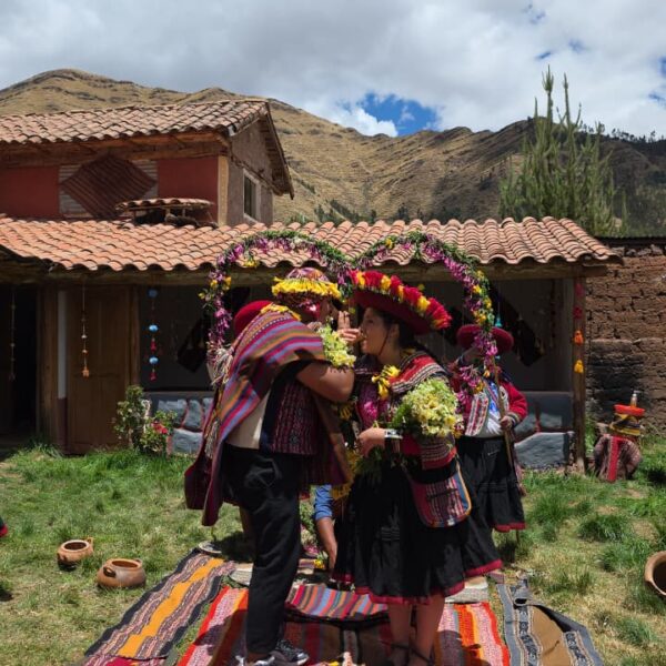 A nuestra llegada, la comunidad dará una cálida bienvenida a los futuros esposos entre cantos, bailes y música tradicional de la localidad. Además, se entregarán ramos de flores y mate de muña como símbolos de hospitalidad y celebración.